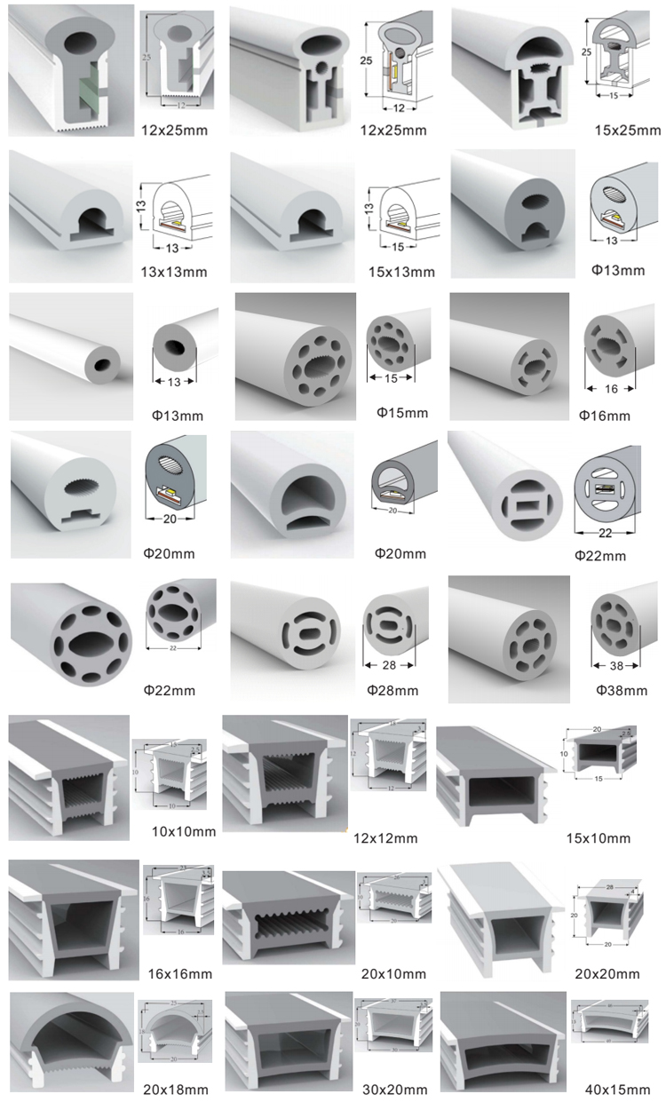 Velikost silikonové neonové trubice |