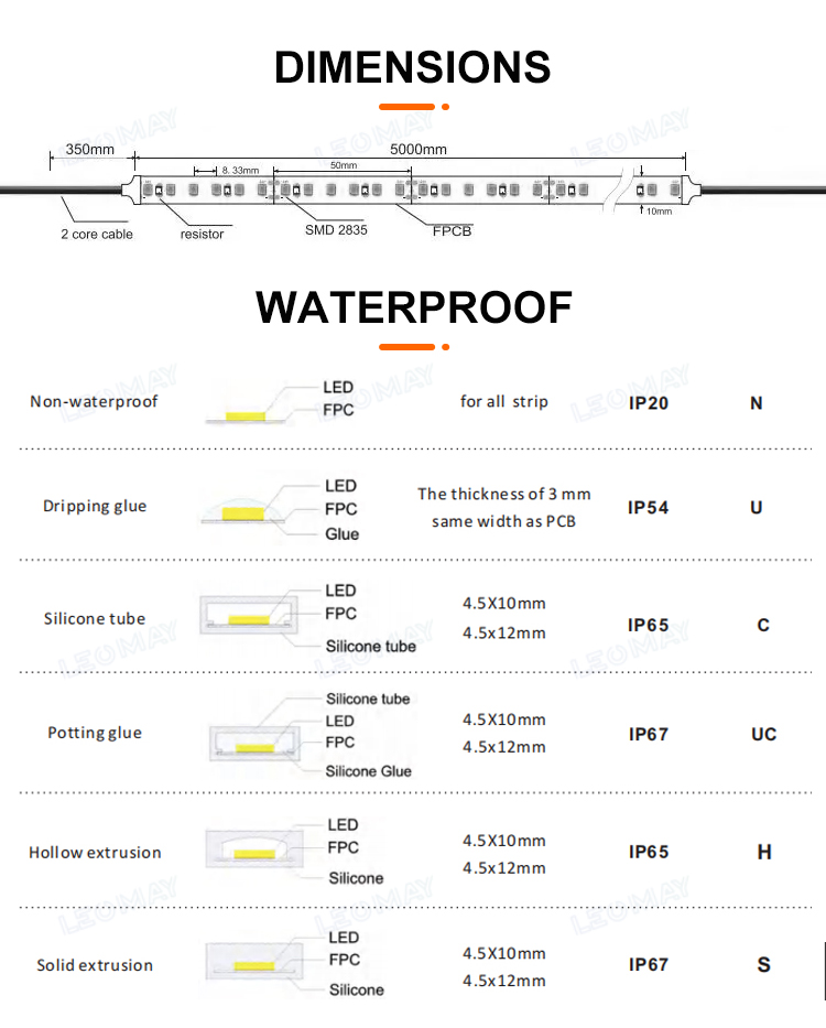 Ra80 : 2700K ( 435لومن/میٹر)، 3000K ( 445لومن/میٹر)، 4000K ( 460لومن/میٹر)، 6000K ( 480LM/م) |